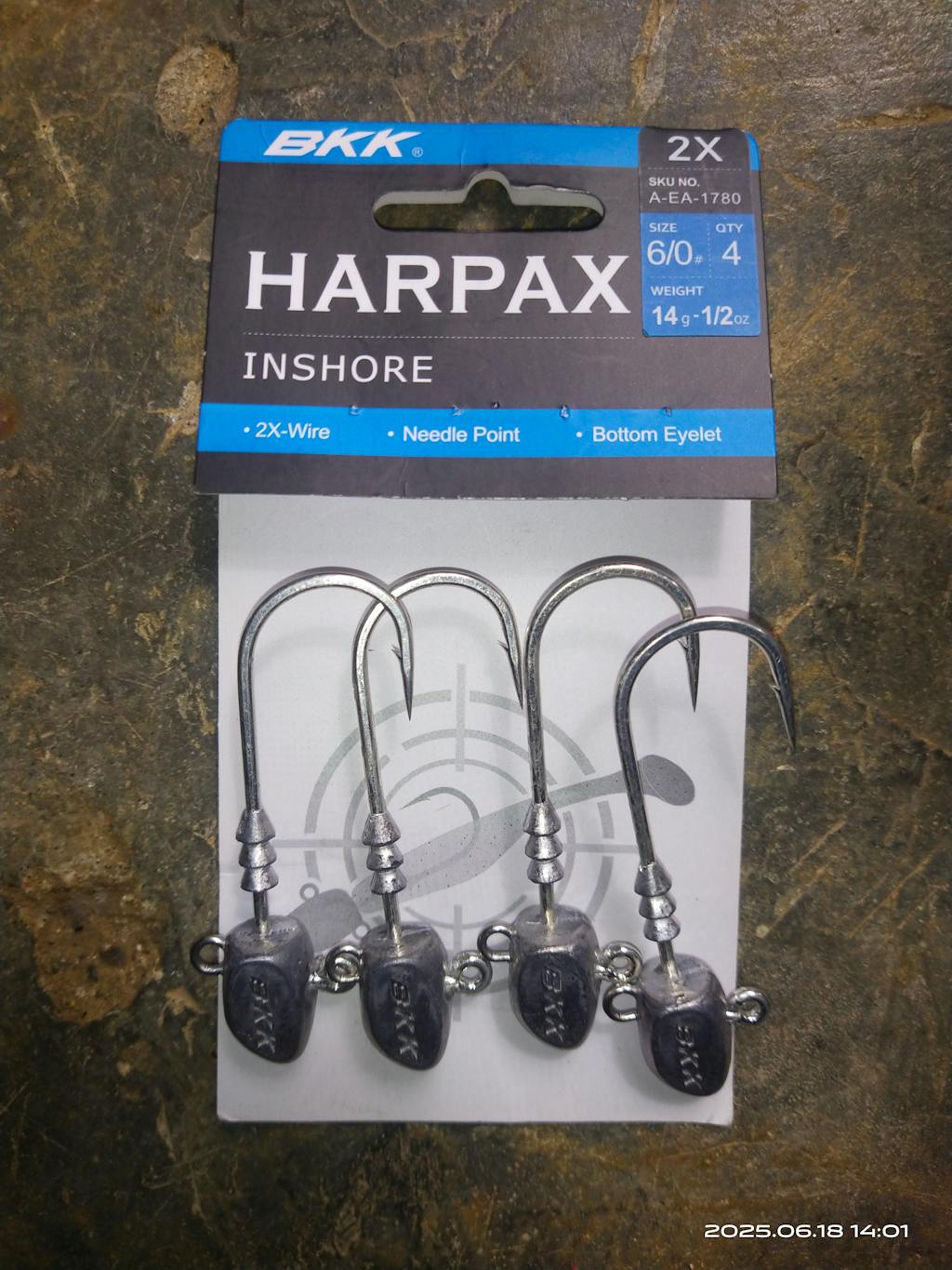 The BKK Harpax Inshore is a short shank 2x-wire HD jighead equipped with corrosion-resistant Bright-Tin coating developed to be used primarily in saltwater environments. The straight point delivers immediate hook-ups, while the bait keeper is designed to fit most kinds of soft plastic baits including scented, floating or sinking baits whole plastic blend may very significantly.